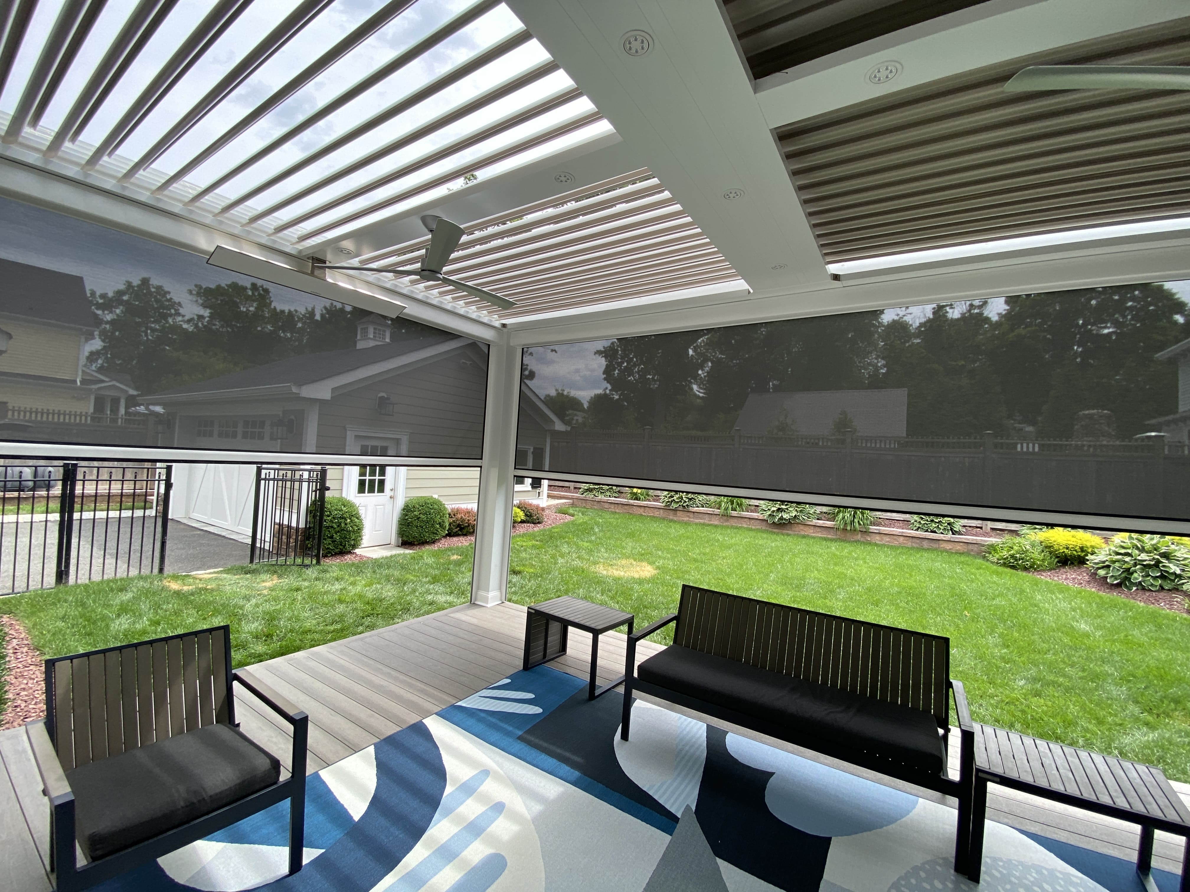 Majestic Outdoor's modern pergolas by StruXure offer customized and automated outdoor living spaces, perfect for both residential and commercial settings. They come with various styles, colors, and features like lighting, fans, heaters, and screens. The pivoting louvers provide control over sunlight and offer year-round weather protection. Retractable awnings from Majestic Outdoor can transform unused outdoor spaces by providing sun protection, keeping them cool and comfortable. These motorized awnings offer flexibility with sun or shade at the push of a button, and are available in a wide selection of fabric colors and patterns. Upgrade your outdoor space with pergolas and awnings in Greenville, NY.